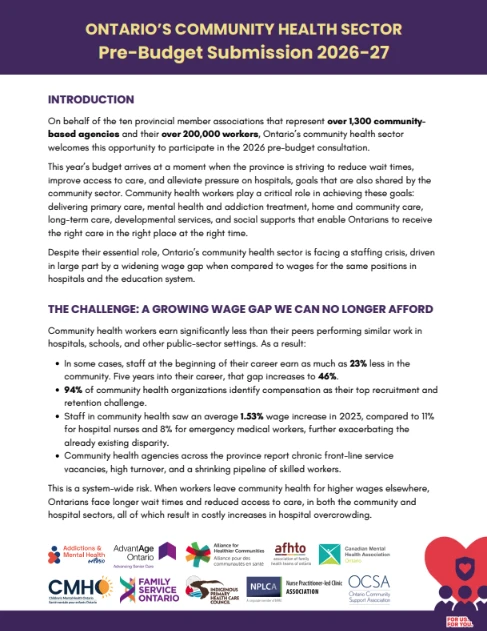 As part of AFHTO’s ongoing advocacy, we have collaborated with other organizations in the primary care and community health sectors to develop joint pre-budget submissions with focused asks. Read more here: